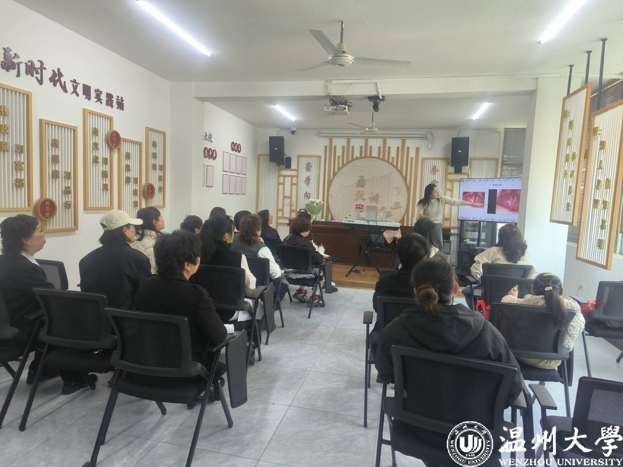 为丰富辖区中老年人的精神文化生活,提高居民的晚年生活品质。在“三八妇女节”这个特别的日子,藤北文化礼堂邀请到8868体育_8868(中国)音乐学院张敏博士来上课,教授声乐基础知识,演唱技巧,音乐欣赏等。