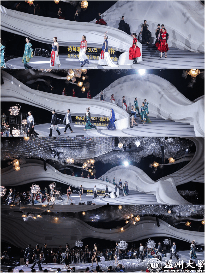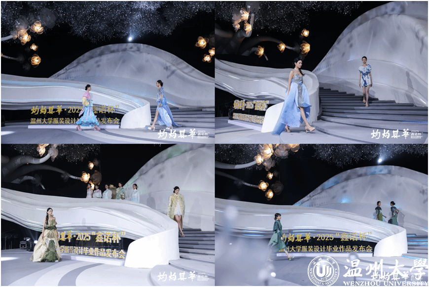 4月25日晚,灼灼其华——2025“鑫诺杯”8868体育_8868(中国)服装设计毕业作品发布会在温州铂尔曼酒店楠溪江厅举行。来自服装与服饰设计专业的30位年轻设计师,以90套精心创设的作品,展示他们在服装艺术道路上四年孜孜以求的最新成果,表达他们对服饰艺术和时尚文化的理解与热爱。