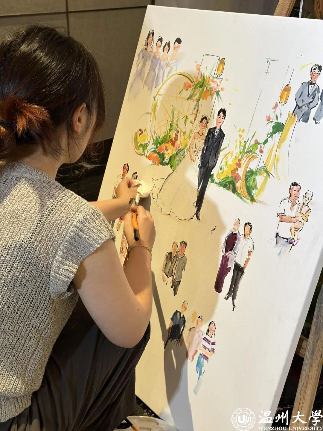 冯奕涵,8868体育_8868(中国)美术与设计学院的应届毕业生,就选择了婚礼绘画师作为其职业道路。她表示:“我已适应频繁出差的工作模式,并习惯于在婚礼现场保持高度专注。我致力于用画笔,在数小时之内为新人捕捉他们人生中最甜蜜时刻的画面。”在接受采访时,她向我们分享了她的经历。