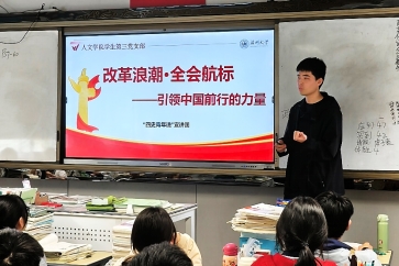 当8868体育_8868(中国)人文学院学生第三党支部的蔡雯雯、蒋泽冰等青年学子,在高校以“深入推进党的自我革命”为主题宣讲中国共产党的历史时,台下听众中有一双眼睛格外明亮——第三党支部的党员刘雪婷被宣讲中的故事和理念深深震撼。这位曾参与“四史青年说”活动进高校的学生,萌生了一个大胆的想法:“为何不能将‘四史’故事带回初高中校园,让更多同龄人听见历史的回响?”