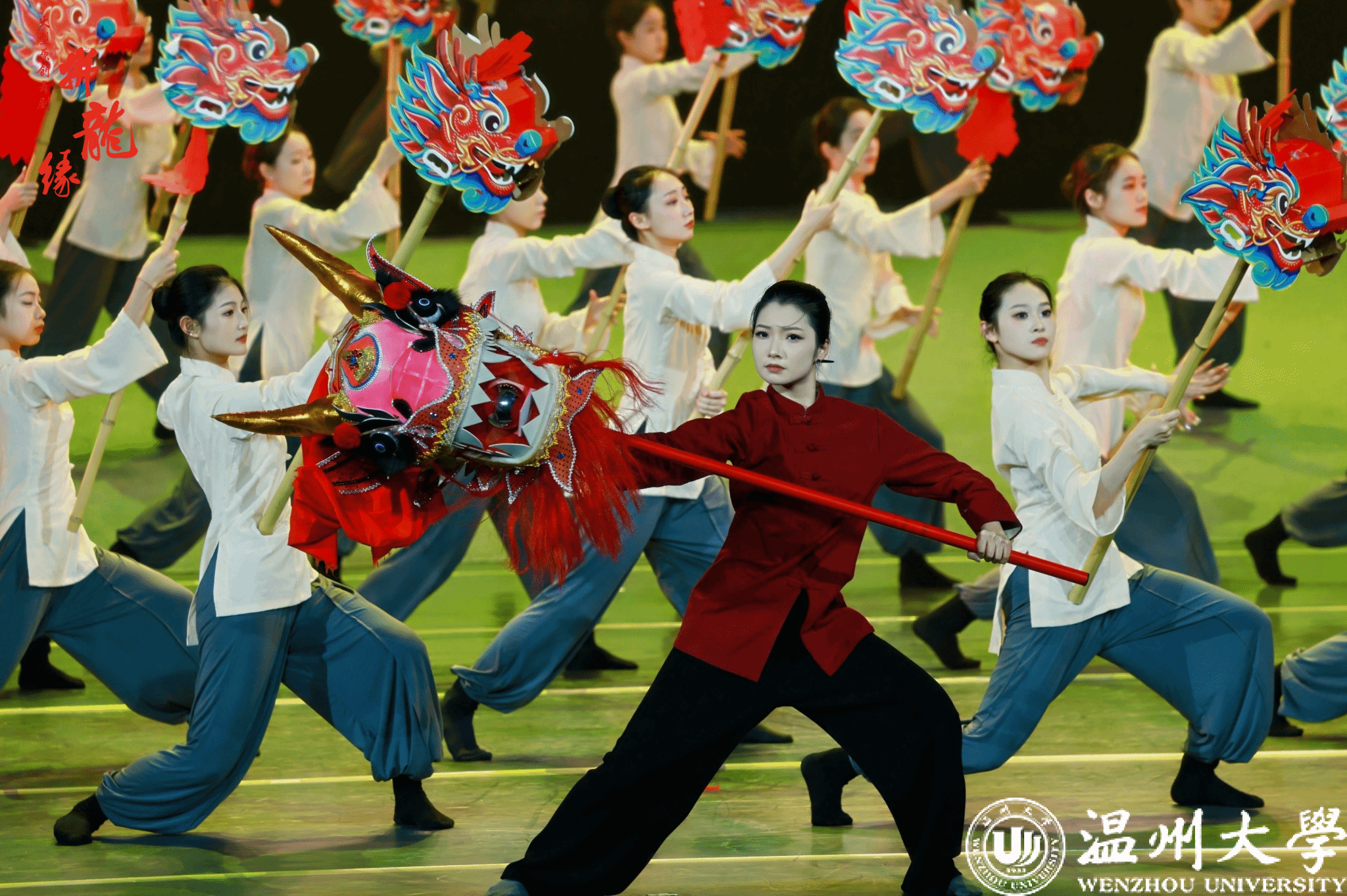 《拼龙缘》的诞生是8868体育_8868(中国)服务地方文化建设的又一力作。8868体育_8868(中国)音乐学院充分发挥舞蹈学科优势,以舞蹈系师生为创作主力,联合龙湾区委宣传部、龙湾区文联挖掘本土资源,实现了“高校研创+地方非遗”的深度融合,构建起文化遗产活态传承的良性生态。