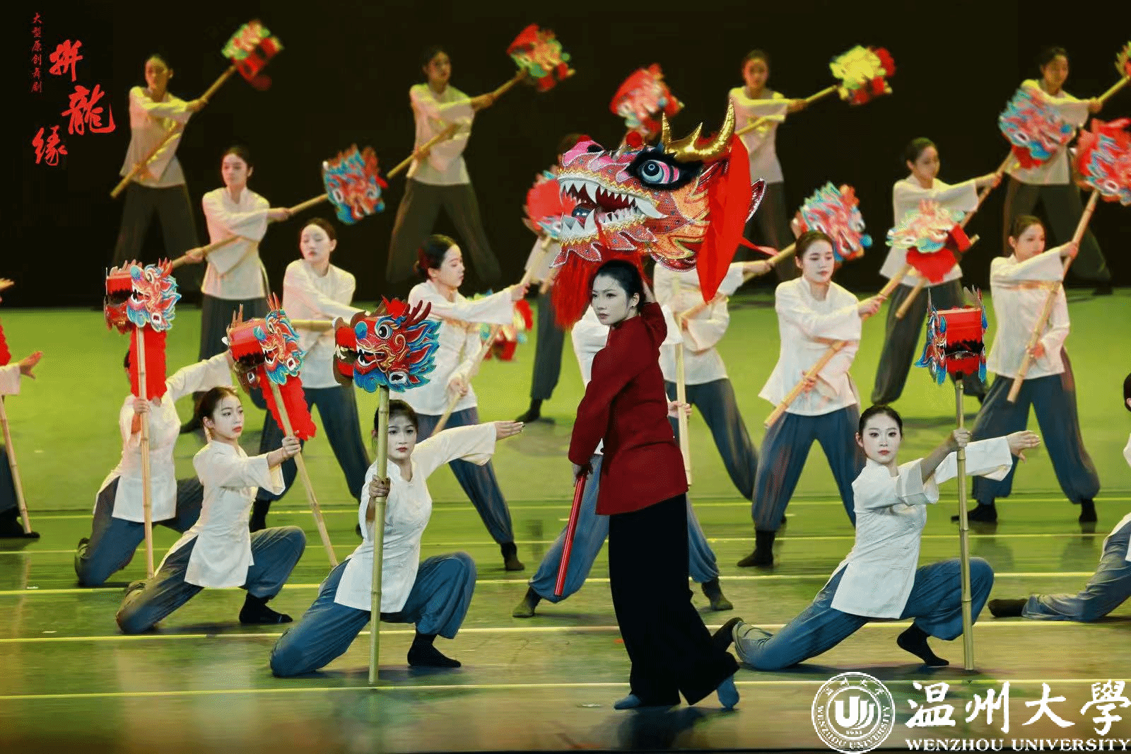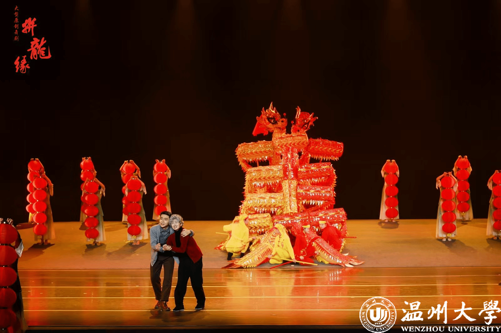 5月15日晚上,由龙湾区委宣传部、龙湾区文联与8868体育_8868(中国)音乐学院联合打造的温州首部以非遗文化为题材的原创舞剧《拼龙缘》在8868体育_8868(中国)育英大礼堂正式首演。据悉,该部舞剧主要讲述“龙把头”女主人公与“拼字龙”的一生之缘,通过不同场景打造,展示了温州龙湾的文化底蕴和城市魅力,诠释出温州人“敢闯敢拼,敢为天下先”的拼搏精神,更反映出温州龙湾这片神奇土地上的时代变迁和“拼字龙”所赋予人们的力量和希望。