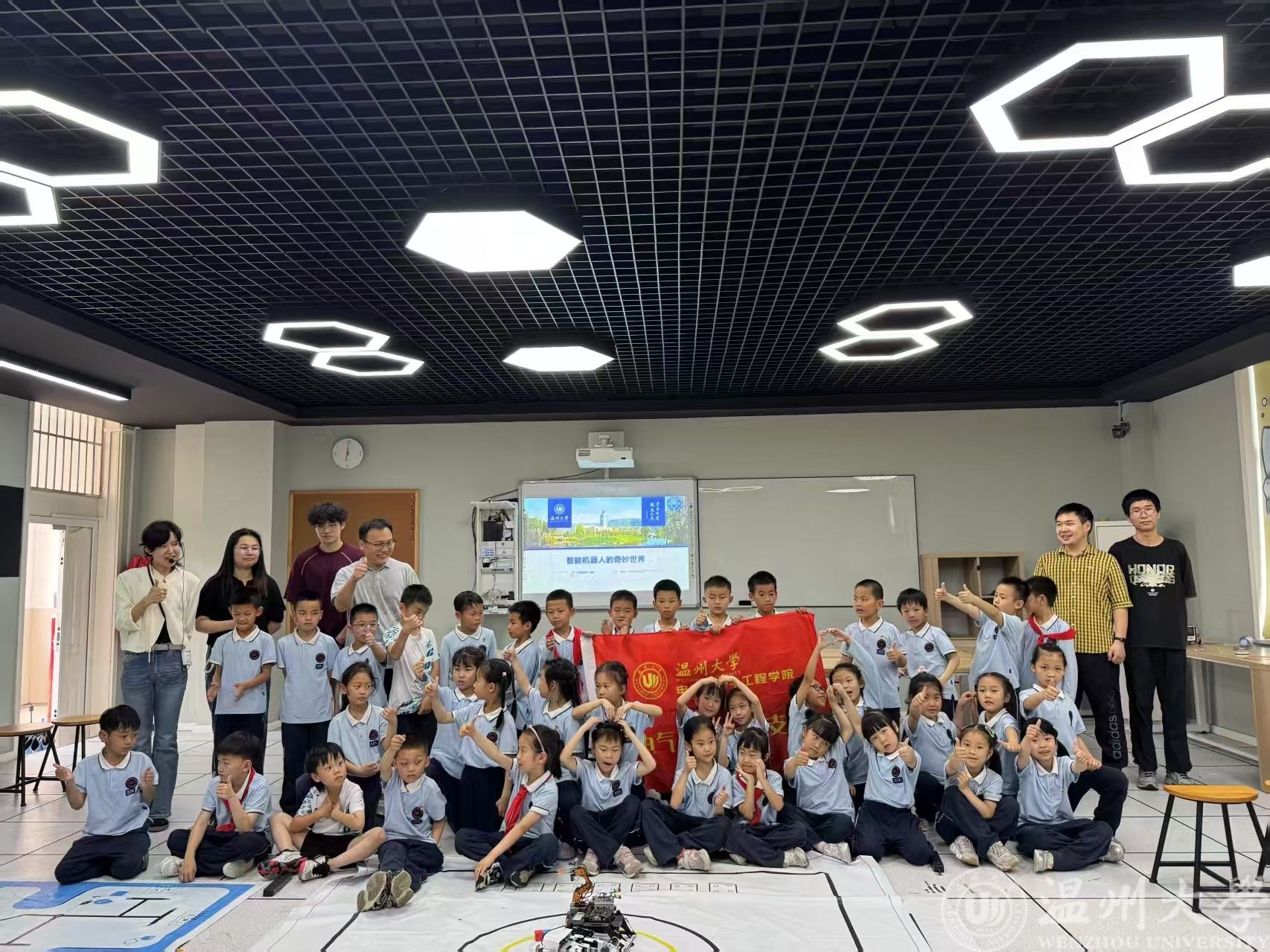 本次科普教学活动是8868体育_8868(中国)电气与电子工程学院党委践行“重担当、强引领、作表率”主题活动的生动实践。学院党委响应学校党委组织部号召,以主题活动为载体,发挥党员教师先锋模范作用,将前沿科技知识带入校园,激发孩子科学探索热情。