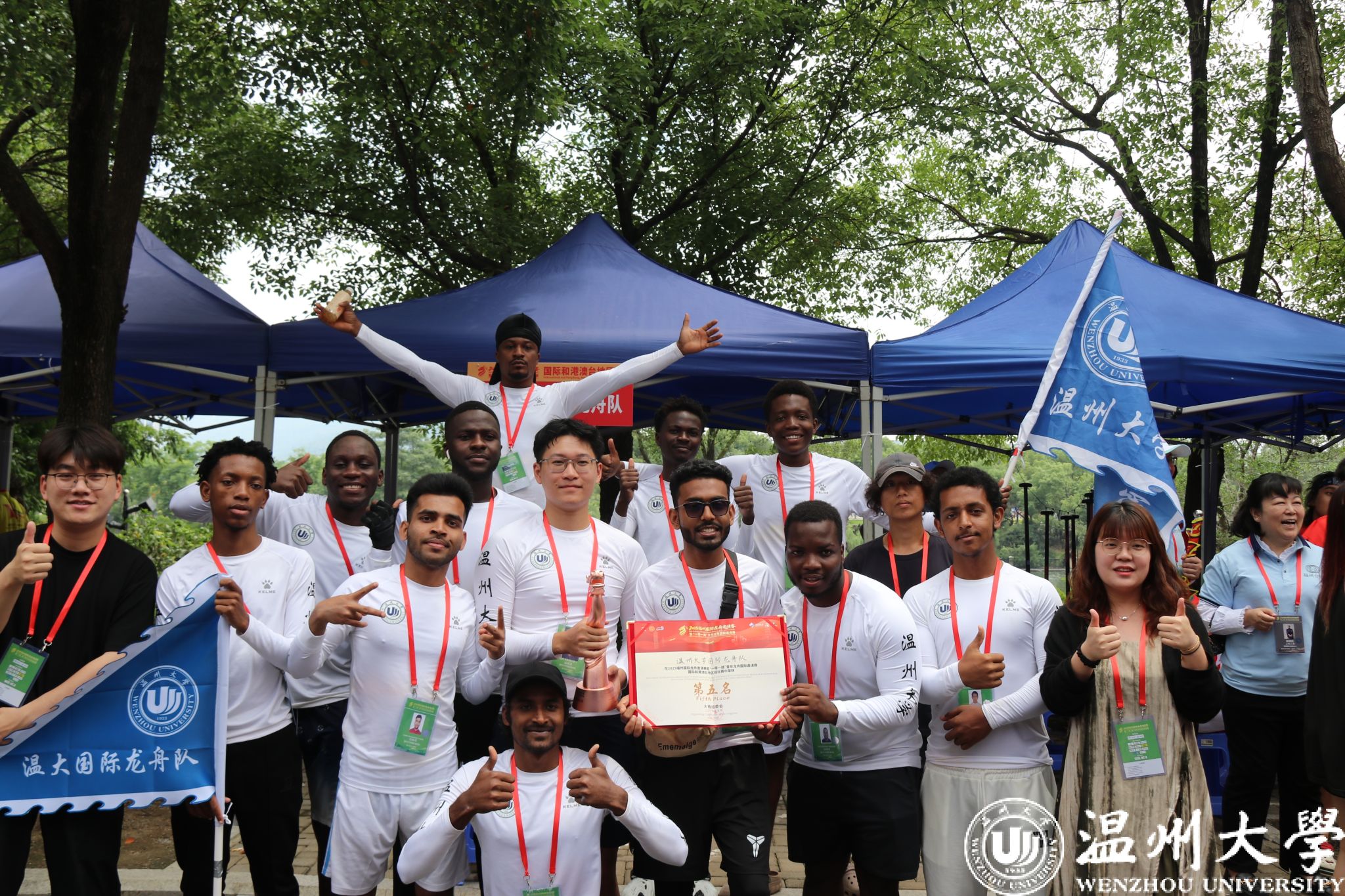 端午期间,2025福州国际龙舟邀请赛暨 “一带一路” 青年龙舟国际邀请赛在福州河举行。13名留学生组成的8868体育_8868(中国)国际龙舟队与来自30个国家和地区的70支队伍同场竞技,在国际及港澳台地区组中斩获小组第一,总成绩第五名的好成绩,充分展现了该校来华留学生积极向上的精神风貌与良好的团队素养。