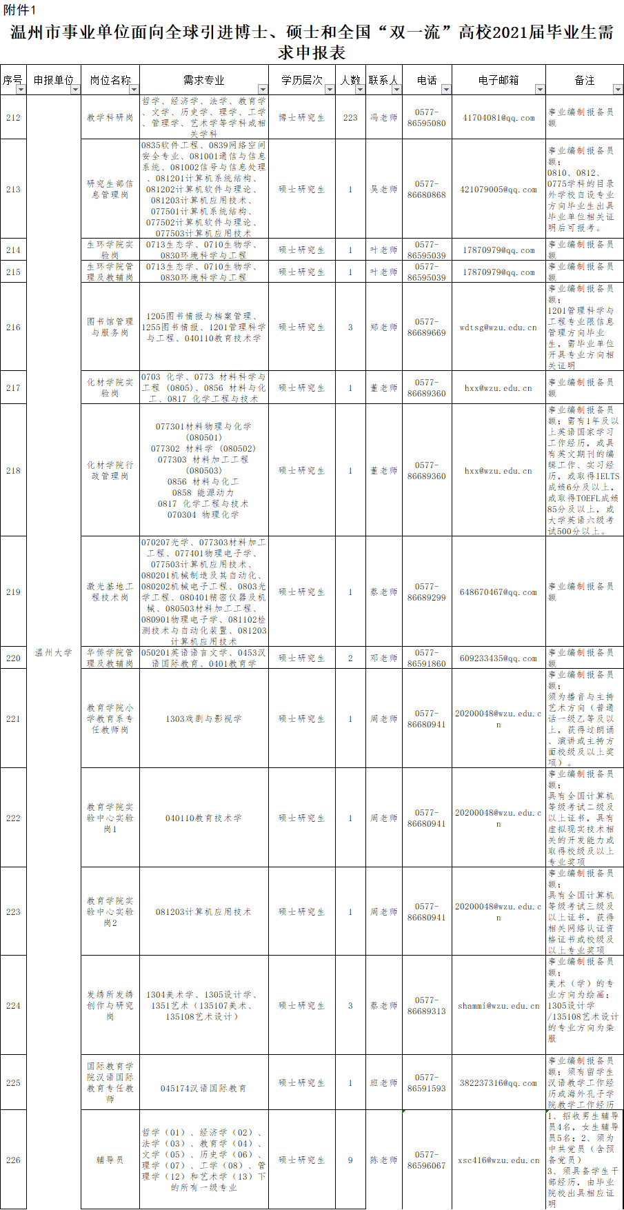 附件:1.温州市事业单位面向全球引进录用博士、硕士和2021届优秀本科毕业生需求表