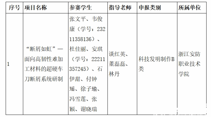 根据《关于举办浙江省第十九届“挑战杯”大学生课外学术科技作品竞赛的通知》相关要求,现将韦俊康等2名同学作为项目组成员跨校参加浙江省第十九届“挑战杯”大学生课外学术科技作品竞赛情况予以公示,具体名单如下: