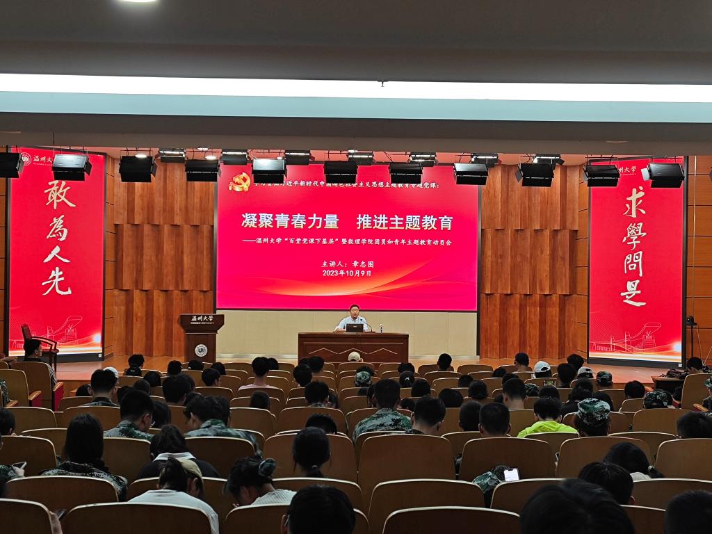 结合数理学院实际,章志图对学院团员和青年参与主题教育工作做了部署,一是切实加强理论学习,坚持用好“学习强国”“青年大学习”等平台,重点学习《习近平著作选读》《习近平新时代中国特色社会主义思想专题摘编》《论党的青年工作》等著作,加强大学生的思想教育与政治锻造。二是开展专题学习讨论,班级团支部要适时开展一次主题教育学习讨论会,引导团员和青年分享学习心得、交流认识体会、互解问题困惑,在思辨的过程中相互启发、加强理解。三是积极组织校内外文化场馆的实践学习活动,各班团支部积极组织参观8868体育_8868(中国)校史馆、苏步青谷超豪纪念馆、温州革命历史纪念馆、温州市博物馆等诸多文化教育场馆,让团员和青年潜移默化接受教育,增进对温大的认知,增进对温州的认识。党课中,章志图还就增进奋斗精神、提升学业质量,增进社会服务、深入开展“阳光”青年志愿者活动等进行了案例教学。