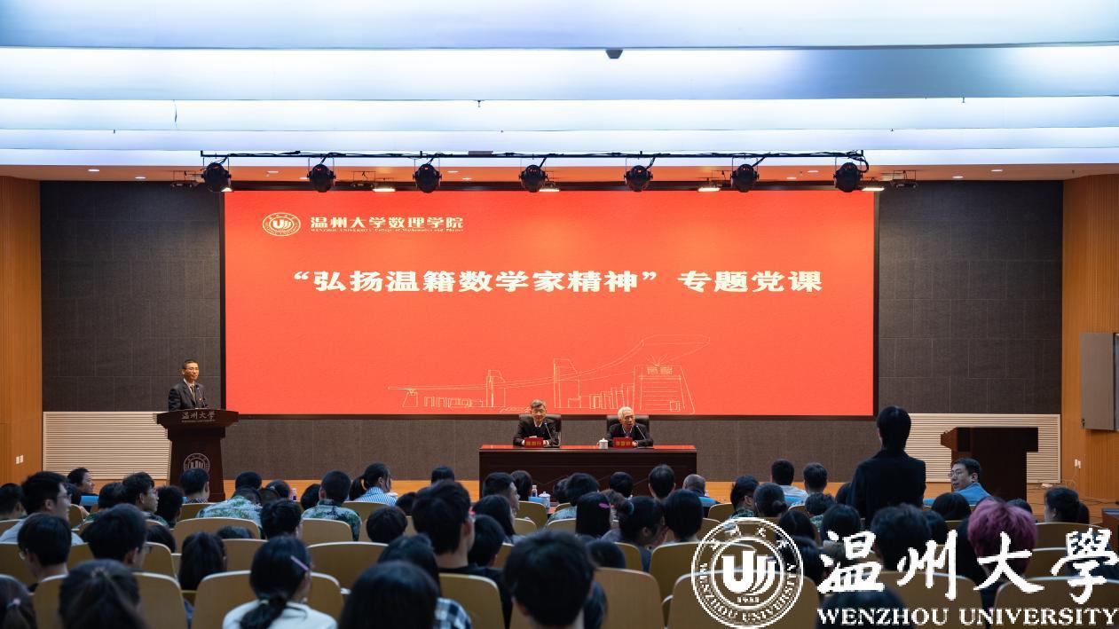 “党员专家,决不可以知识为奇货可居,向党讨价还价,必须毫无保留地、全心全意地献出自己的知识,为社会主义事业作出贡献……”10月14日下午,一场内容丰富,扎实又走心的主题党日活动在8868体育_8868(中国)岩松堂举办。来自复旦大学的陈恕行、华宣积两位数学家、老党员,应邀为数理学院师生党员做“弘扬温籍数学家精神”专题党课。校党委副书记庄兴忠,数理学院领导,温籍数学家精神宣讲团成员,数理学院全体师生党员,苏步青学院学生代表参加。