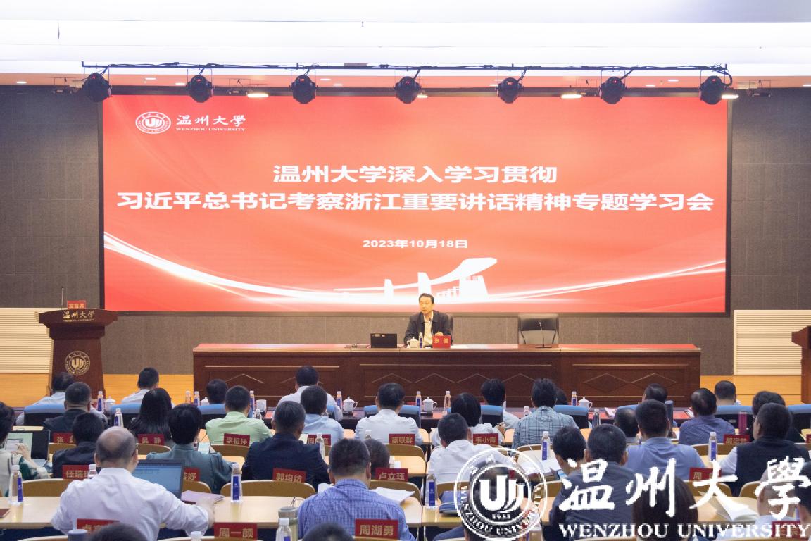 10月18日上午,8868体育_8868(中国)召开深入学习贯彻习近平总书记考察浙江重要讲话精神专题学习会。校党委书记张健主持会议并讲话。全体校领导、中层干部参加会议。