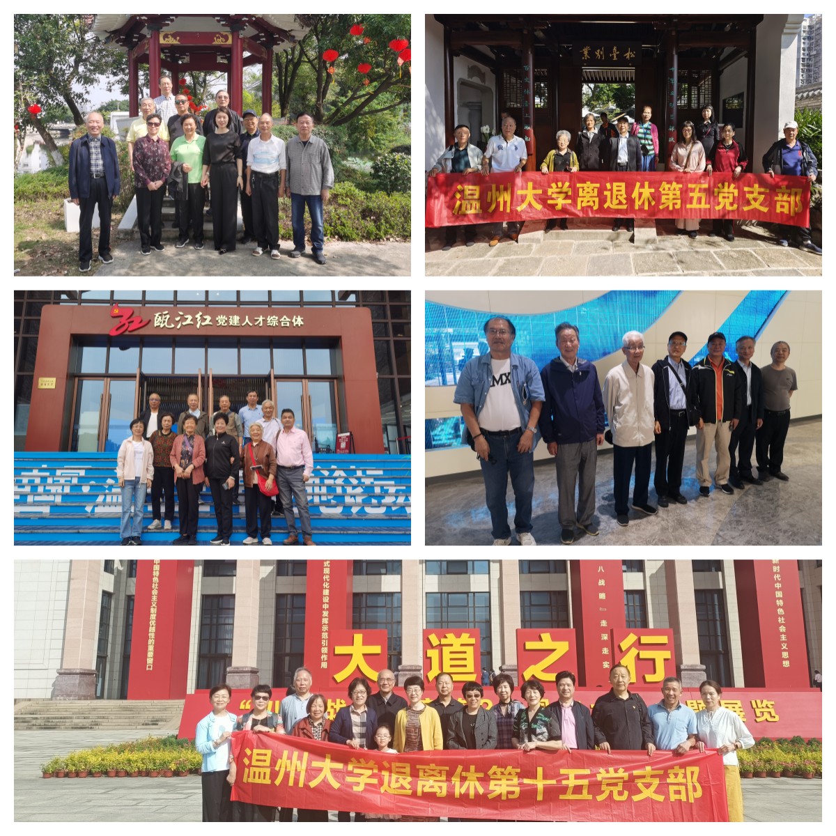 结合理论学习和调查研究,紧密联系工作实际,离退休党员、干部充分发挥独特优势,为学校高质量内涵式发展,温州续写创新史、走好共富路、争创先行市和奋力谱写中国式现代化浙江篇章贡献银龄智慧和力量。学校原党委书记、浙江省政府咨询委员会委员、温州市决咨委副主任谢树华研究员参加第一批学习贯彻习近平新时代中国特色社会主义思想主题教育指导工作获省委肯定。学校原党委副书记、浙江省高校首批红色讲师、温州市理论宣讲名师牟德刚教授受邀分别为市直单位离退休干部党员骨干和平阳县离退休干部党员骨干培训会学员作《“八八战略”引领浙江 一张蓝图赓续奋绘》专题讲座。温州市决咨委委员、温州老干部大学“流动红色能源站”讲师、学校马克思主义学院张小燕教授受邀为温州老干部大学开展的“学讲话、悟精神、促发展、惠民生”主题党日活动作《归根到底两个“行”》专题讲座,还被聘任为市网络社会组织专家库成员并在由市委网信办主办,市网促会、温州新闻网承办的“网聚新力量 E起向未来”网络传播活动暨“循迹溯源学思想促践行”活动上作主题讲座。支部书记张汝潮、瞿亚萍、林初锐的“支书心声”先后在温州老干部微信公众号的“老支书话党建”专栏登载。冯大明、周鼎和、瞿亚平等老党员的作品在“八八战略”实施20周年温州市老干部主题作品展中展出。温大“迎亚运”老干部体育专题邮展上,老党员们通过精心组编的邮集和耐心细致的讲解,为师生呈现了中国体育的伟大成就、辉煌篇章,展示了爱国奉献、团结协作的新时代中国体育精神;林选青、周瑾两位九旬党员还向学校捐赠了个人珍藏多年的邮品。党员张海音副教授退休后仍致力于心理健康教育,应邀为市关工委、市关心下一代基金会举办的第三期“温州市青少年心理健康咨询志愿者培训班”学员讲授其中的《发展心理学》课程。党员林炎琴副教授退休后,继续从事学前教育理论与实践研究,推动幼儿园课程改革。离退休第十党支部联合温州工业与能源发展集团有限公司团委在红日亭开展“九九重阳节、浓浓敬老情,红心向党、善行天下”慈善志愿服务活动。