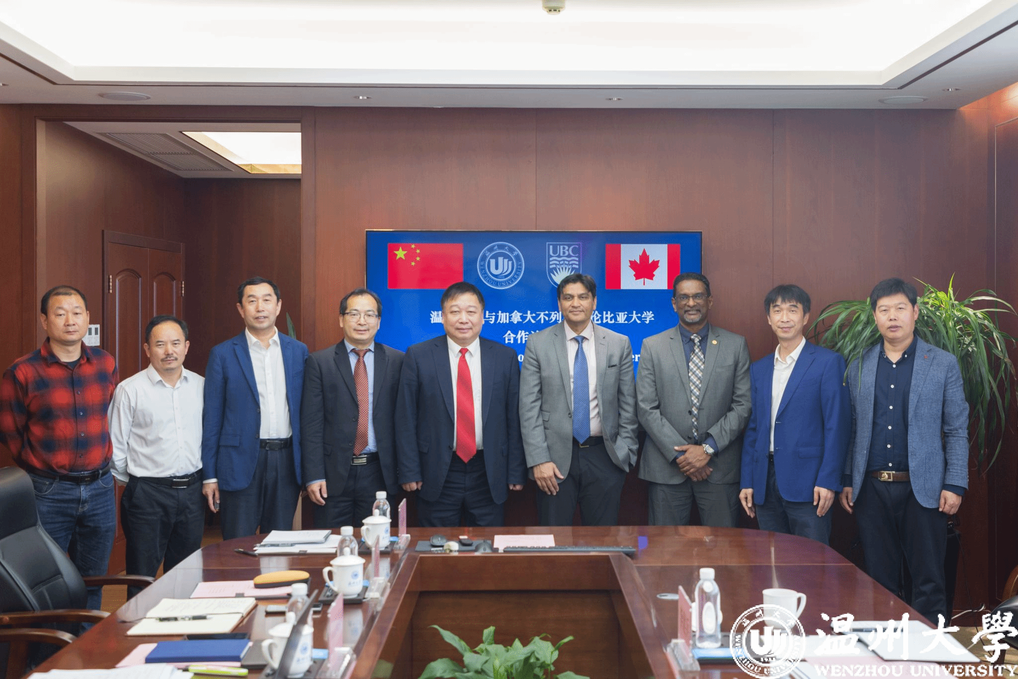 On the morning of April 3rd, Wenzhou University held a cooperation negotiation meeting with the University of British Columbia (UBC) from Canada. ZHAO Min, President of Wenzhou University, and Dr. Rehan Sadiq, Vice President and Provost of UBC, along with Professor Kasun Hewage from UBC and Professor Jianbing LI from the University of Northern British Columbia, attended the meeting, alongside representatives from the International Relations Office and the College of Life and Environmental Science, as well as faculty representatives.