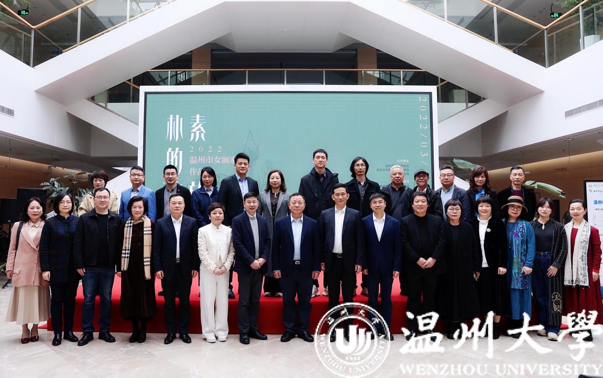 On 5 March afternoon on-site at Wenzhou Cultural Center, Party Secretary of Wenzhou University Shuhua Xie, Deputy Minister of Wenzhou Municipal Propaganda Department Wei Zeng, Secretary of Leading Party Members' Group of Literature Federation of Wenzhou City Xinbo Zhou, member of Party Committee of Wenzhou University and Minister of Propaganda Department Yuju Pan, member of the Leading Party Members' Group and Deputy Director of Culture, Radio and Tourism Bureau of Wenzhou City Mr. Shenggao Liu, and member of Leading Party Group and Vice President of Literature Federation of Wenzhou City Zikang Xie jointly pressed the Start Ball and unveiled the opening ceremony for the “Simply Thriving-2022 Wenzhou Female Artists’ Art Exhibition.