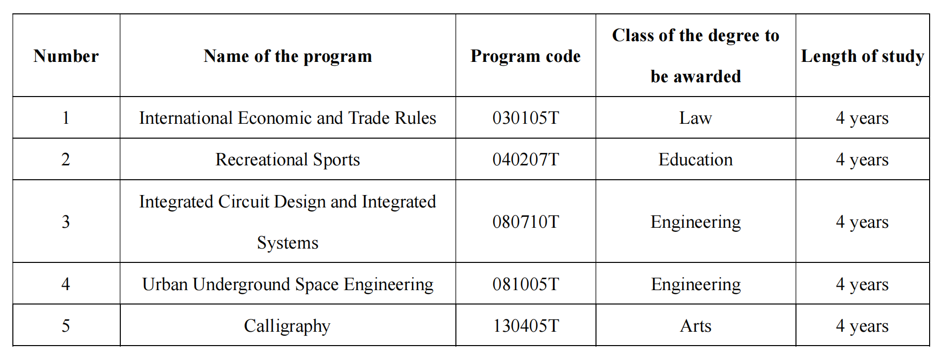 List of Wenzhou University’s newly added undergraduate programs in 2021