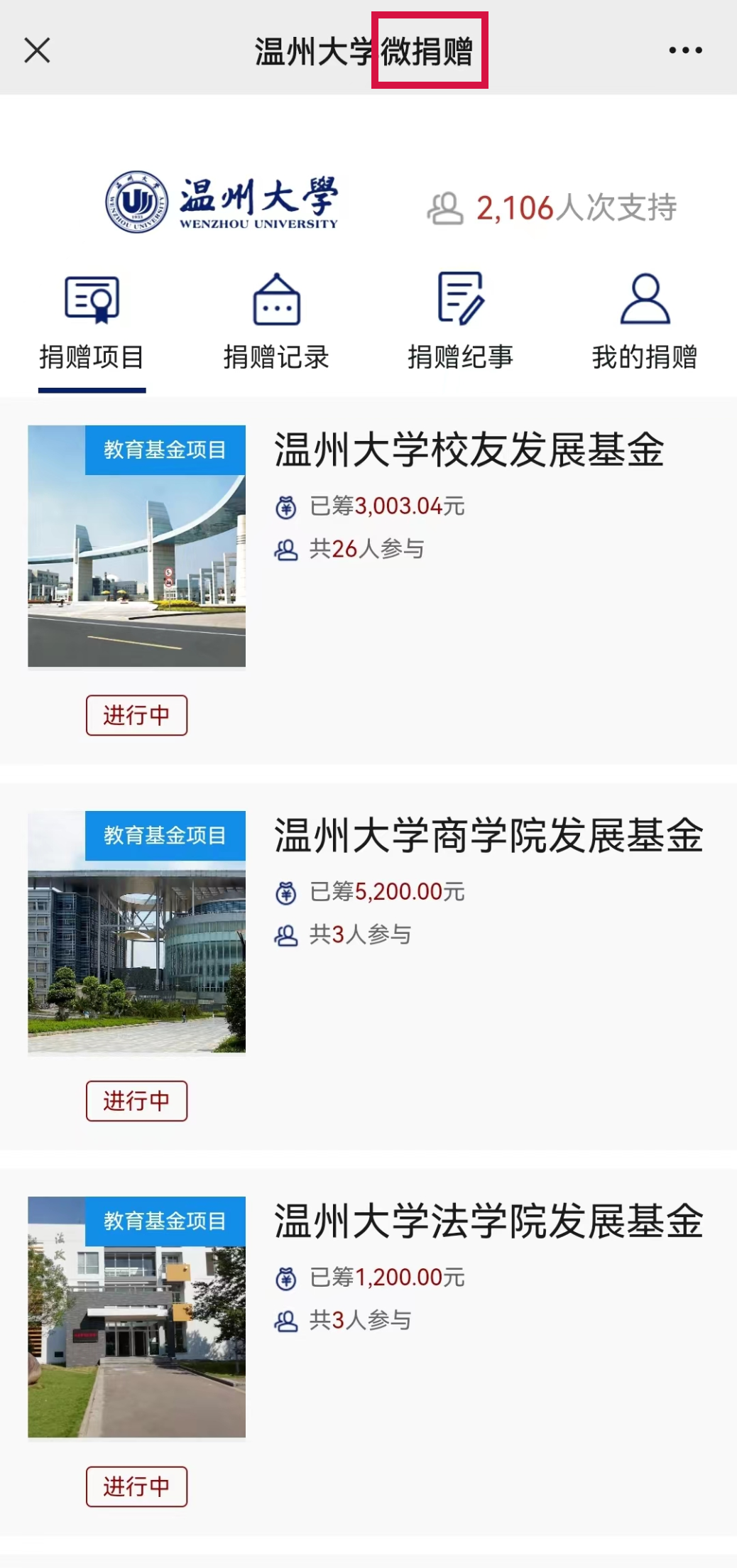 ▲校友可以在线微捐赠,助力学校发展