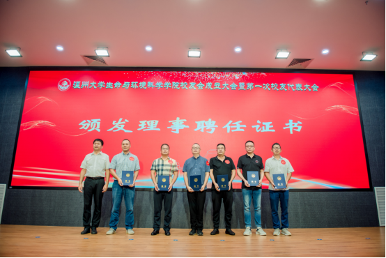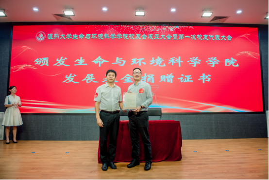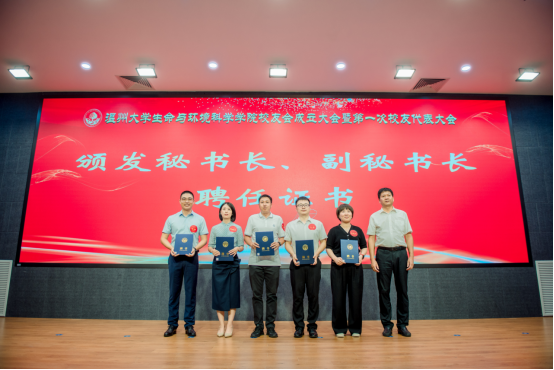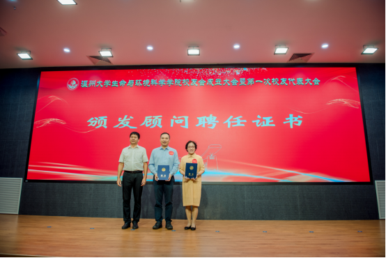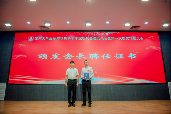 大会审议通过了《8868体育_8868(中国)生命与环境科学学院校友会章程》和生命与环境科学学院校友会第一届理事会成员建议名单。校党委副书记庄兴忠为校友会授牌,并为理事会顾问、会长、副会长、理事、秘书长和副秘书长等颁发聘书。
