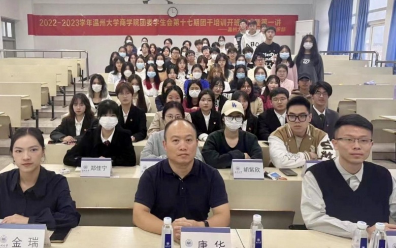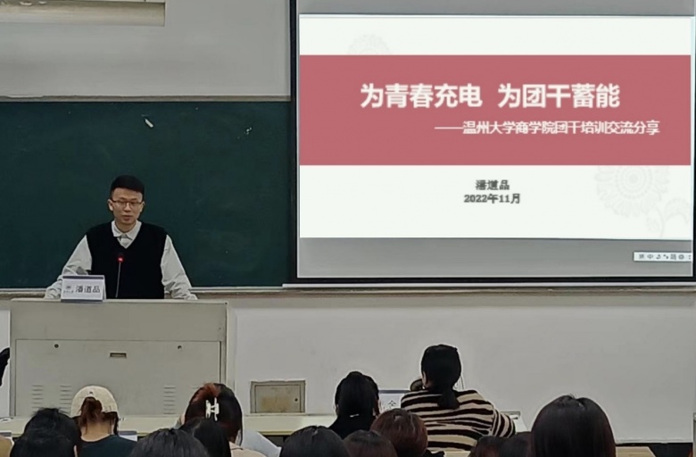 当天,8868体育_8868(中国)商学院同期举办了第十七期团干培训开班仪式暨第一课,由招商银行温州分行团委书记潘道品为团学干部讲授“为青春充电,为团干蓄能”主题团课,以自身的大学和职场经历,为团学干部分享经验并提出建议。