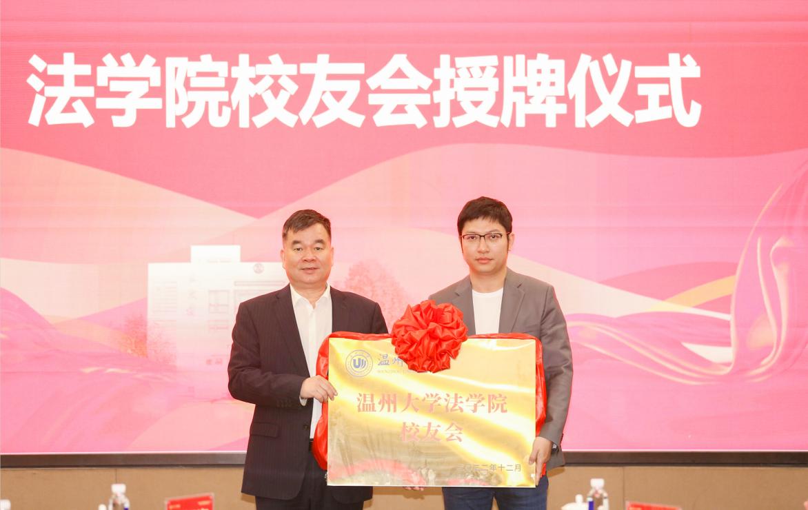 徐和昆副校长向新当选的法学院校友会会长孔剑平授牌