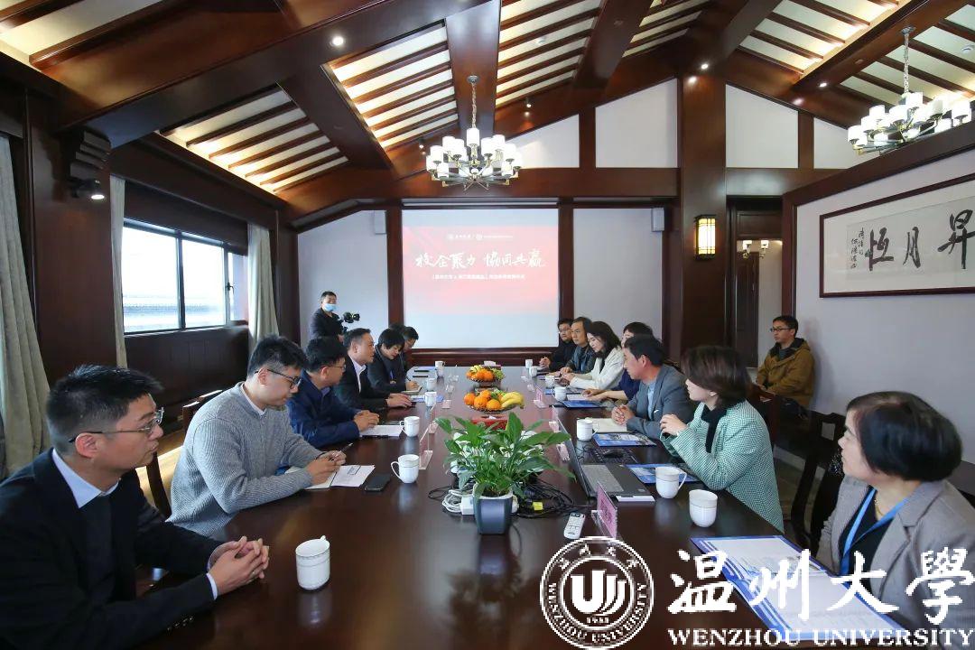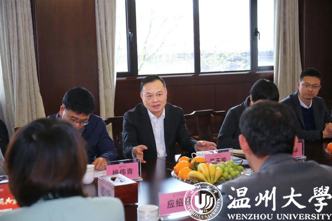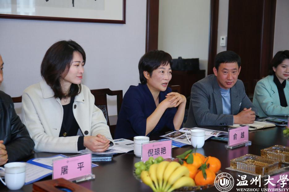 潘玉驹副校长介绍了8868体育_8868(中国)办学历史沿革,近年来在党建思政、学科建设、人才培养、科研创新等方面的办学成绩,对浙江颐和和大健康产业投资有限公司的大力支持表示衷心感谢,体健校友秉持温大校训精神,在各行各业取得的成绩让母校师生倍感自豪。俞越副主席充分点赞了8868体育_8868(中国)近几年的办学成果,希望校企双方在原有基础上,进一步增进了解、加强合作;浙江颐和董事长应绍斌校友从自身成长经历出发,感谢母校培养,表示母校对其创业理想的塑造起到了至关重要的引领作用,未来将个人事业与母校发展紧密联系,不断为助力学子成才做出贡献;诸暨慧佳颐和郦琼群董事长详细介绍了企业的经营现状、运营模式、技术创新等方面的情况,双方就产教融合、产学研合作、拓宽就业渠道、共同促进毕业生高质量就业等方面展开深入交流。