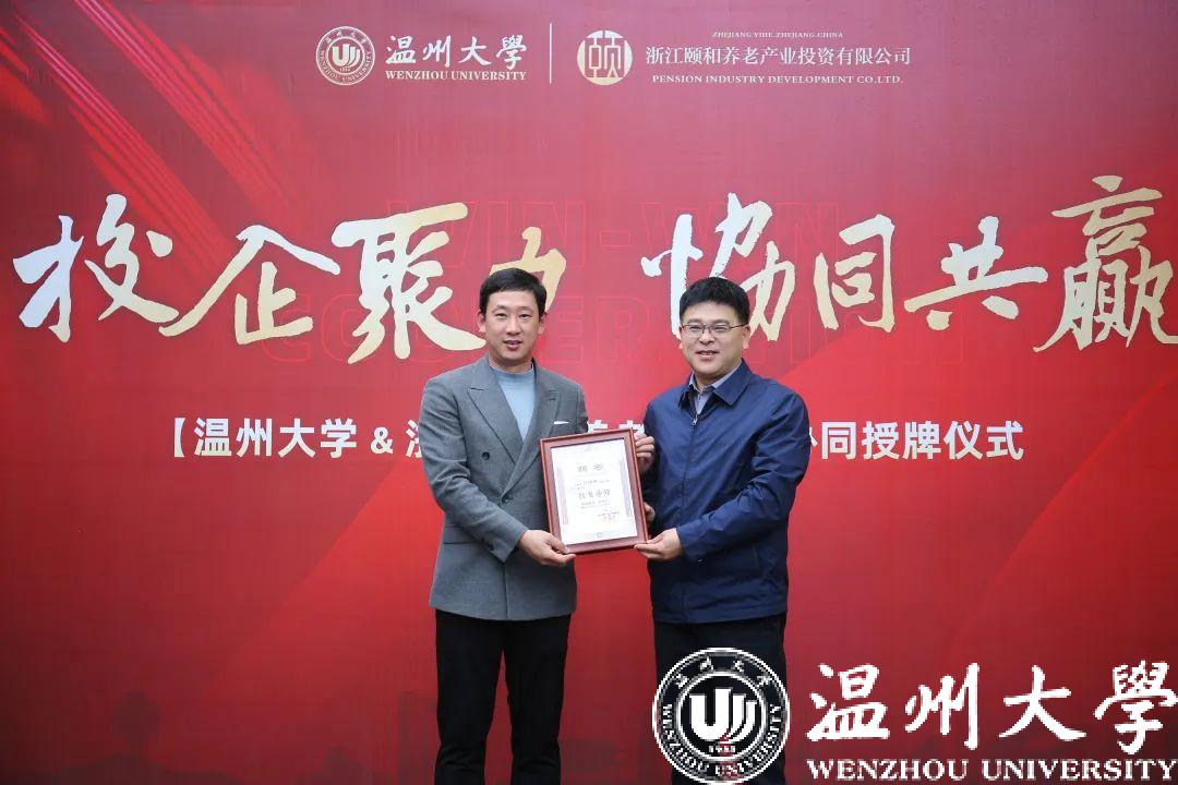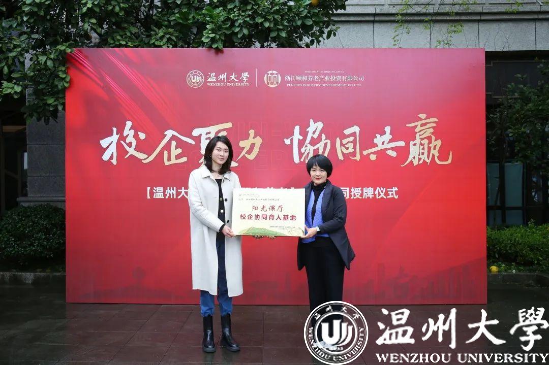 潘玉驹副校长为浙江颐和养老产业投资有限公司方面进行了8868体育_8868(中国)就业实习基地授牌。体育与健康学院党委书记杨伟青为应邵斌董事长颁发校友育人导师聘书,以期借力企业资源、深度助力我院三全育人。体育与健康学院党委副书记王晓华代表温州市阳光课厅体育思政·体育思政(协同育人)工作室为浙江颐和养老产业投资有限公司教育产业部总经理倪琼艳授牌,旨在推进校企协同育人,创新合作模式。