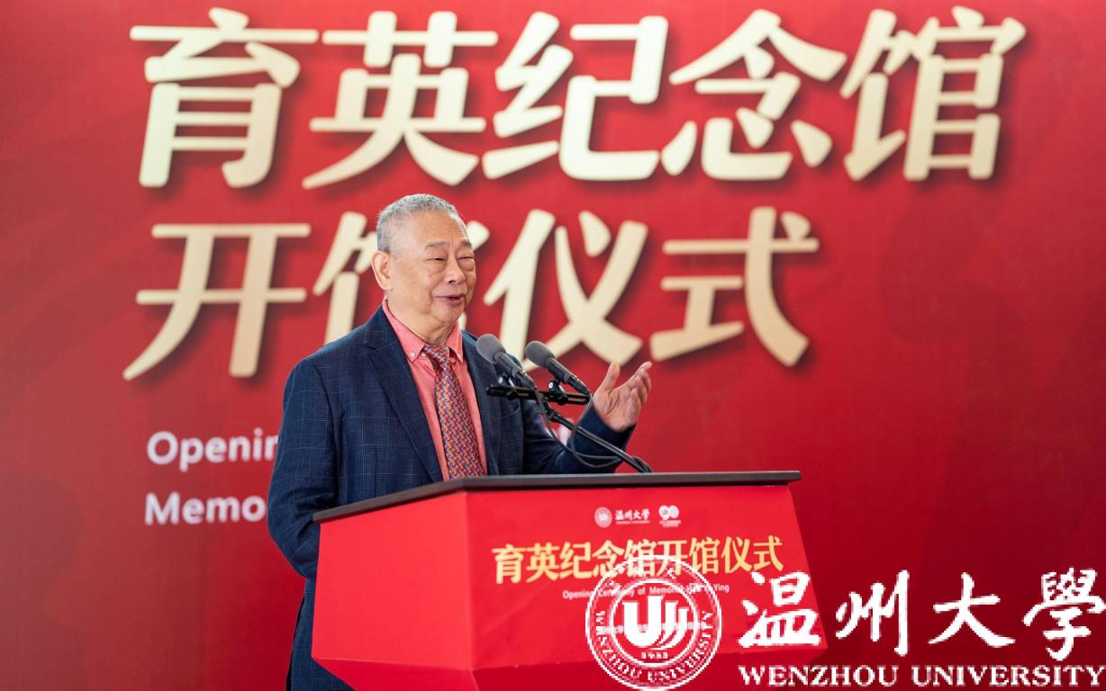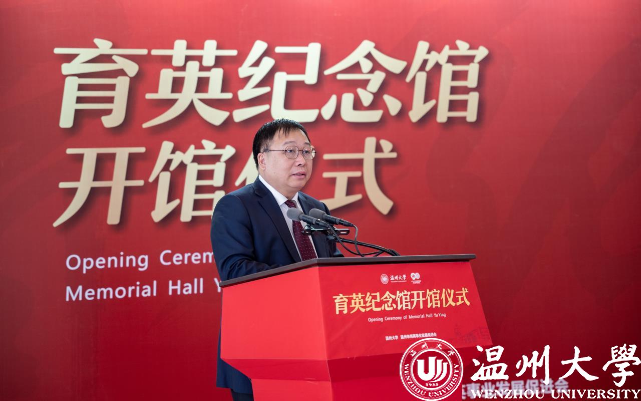 赵敏致辞。他介绍了何朝育先生与夫人何黄美英女士爱国爱乡、造福桑梓的事迹,对何氏家族为8868体育_8868(中国)作出的贡献表示感谢。他表示,育英纪念馆将成为传承弘扬“育英精神”的有效载体,将极大推动社会公益慈善事业蓬勃发展。学校也将以此为契机,将育英纪念馆打造成为温大学子弘扬“育英精神”的新地标,教育引领温大师生积善成德、向善而行。