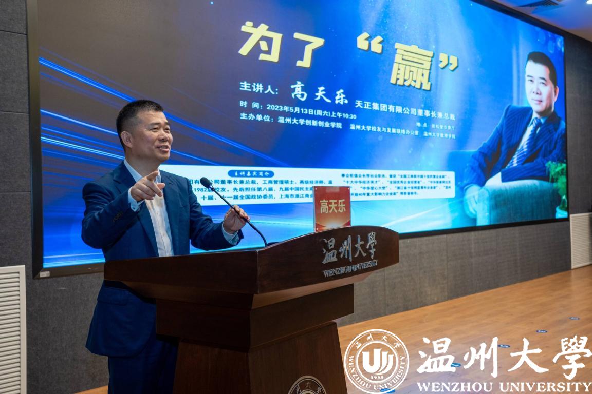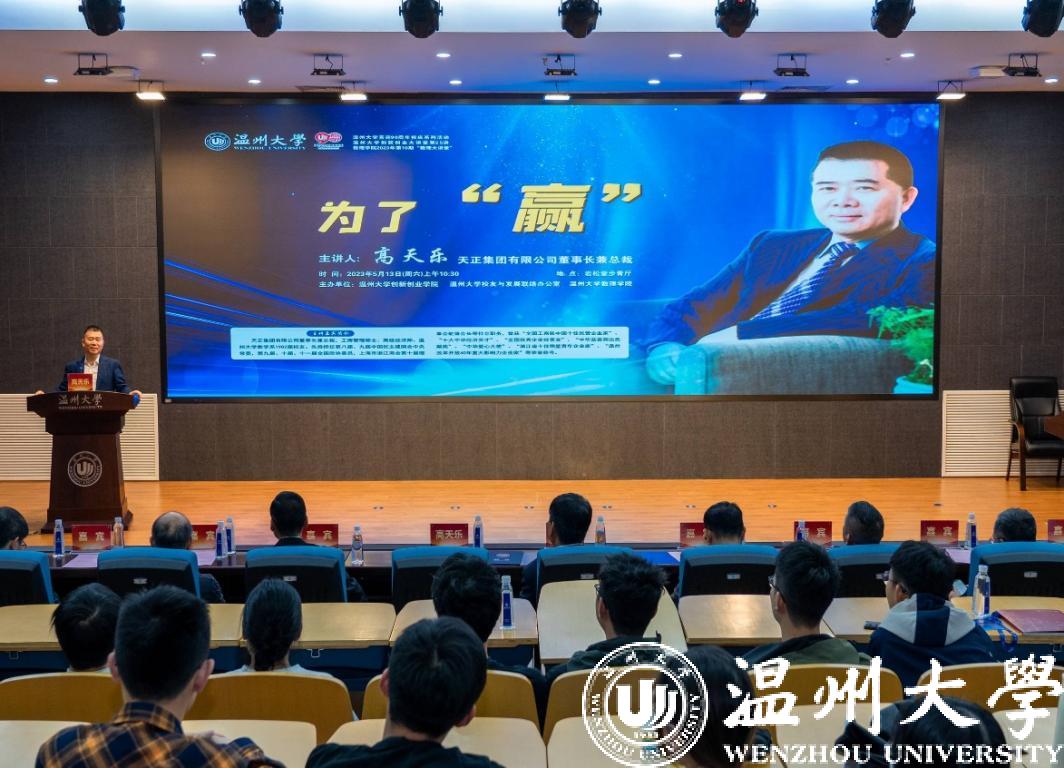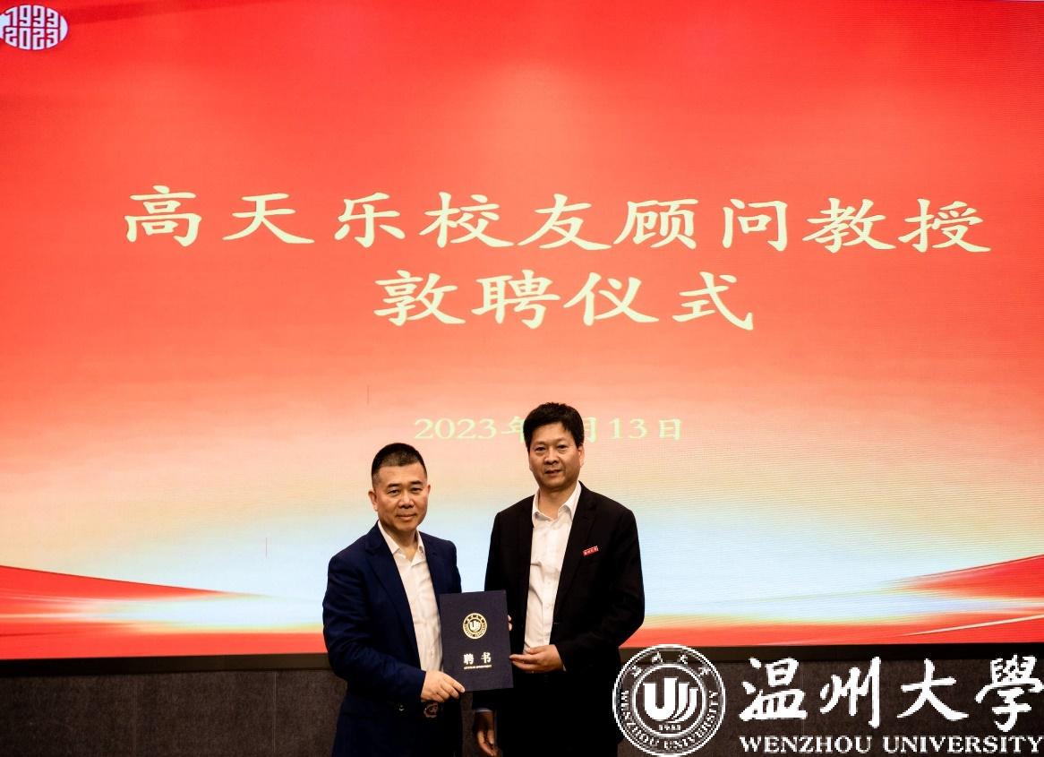 来源: 发布时间:2023-05-14 浏览次数:次在毕业季来临之际,8868体育_8868(中国)邀请企业界校友走进校园,向青年学子宣讲创业,鼓励创业,促进创业。5月13日上午,8868体育_8868(中国)数学系1982届校友、天正集团有限公司董事长兼总裁高天乐先生,应邀为温大学子作题为《为了“赢”》的创业教育讲座,并受聘为8868体育_8868(中国)顾问教授。校党委副书记庄兴忠向高天乐校友颁发聘书。