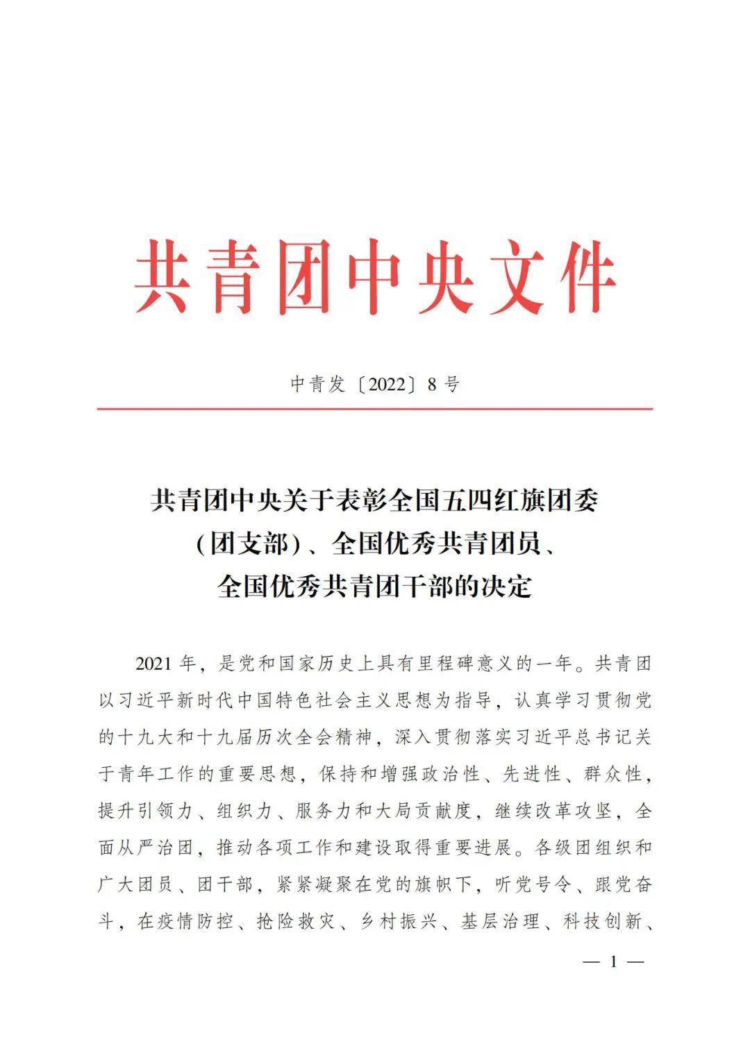 4月13日,共青团中央作出表彰决定,授予293个团组织全国五四红旗团委称号,授予377个团组织全国五四红旗团支部称号,授予457人(含追授3人)全国优秀共青团员称号,授予341人(含追授1人)全国优秀共青团干部称号。